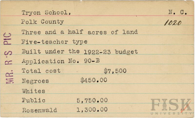 - Julius Rosenwald Fund--Buildings, African American schools--History--20th century, African American schools--Tryon School