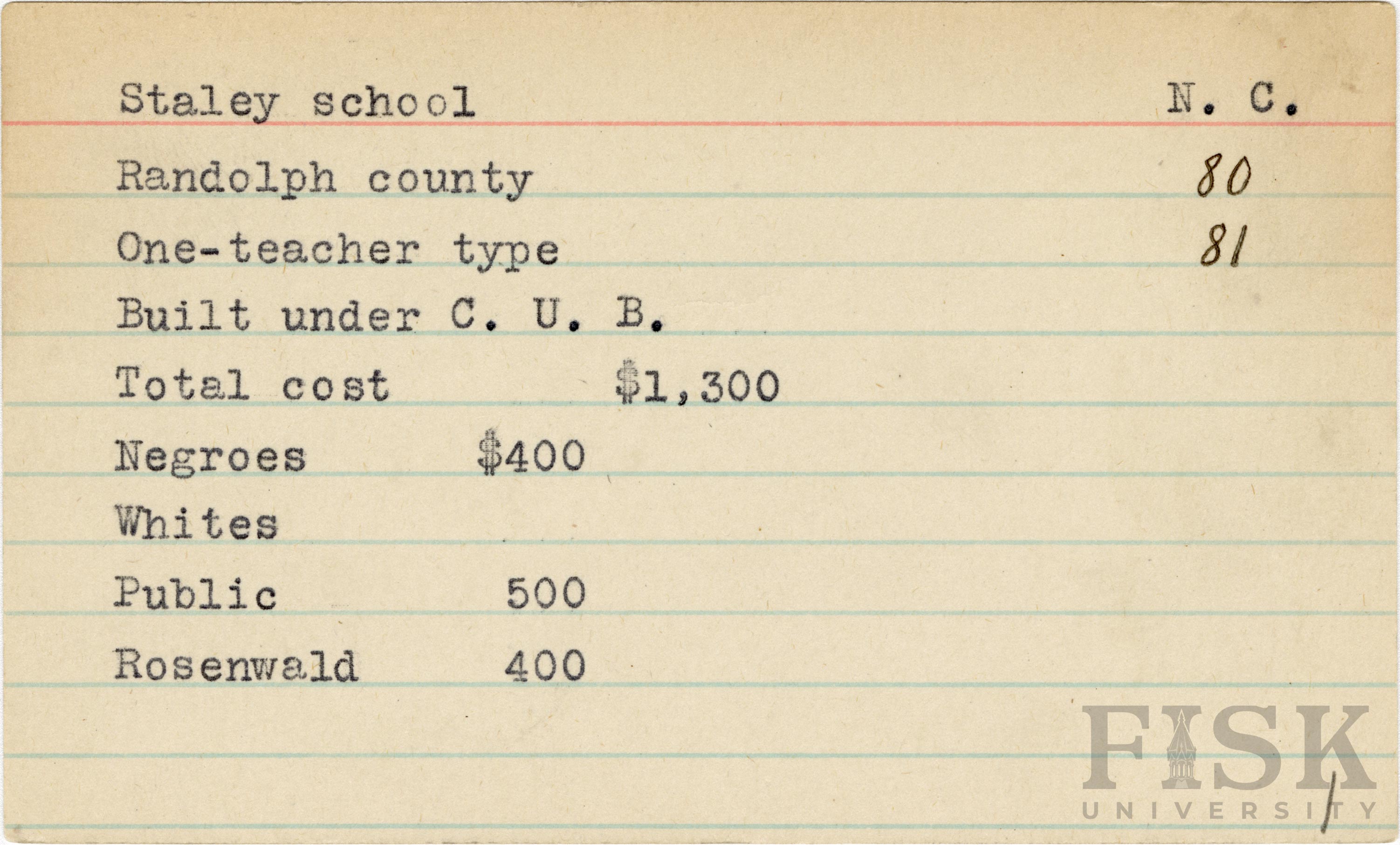 - Rosenwald Fund Card File, The Julius Rosenwald Fund Archives, 1918-1948, John Hope and Aurelia E. Franklin Library
