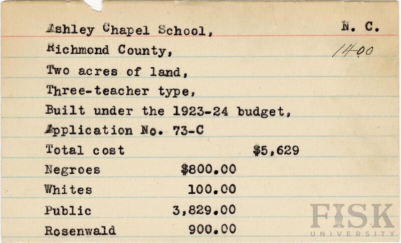 - Rosenwald Fund Card File, The Julius Rosenwald Fund Archives, 1918-1948, John Hope and Aurelia E. Franklin Library