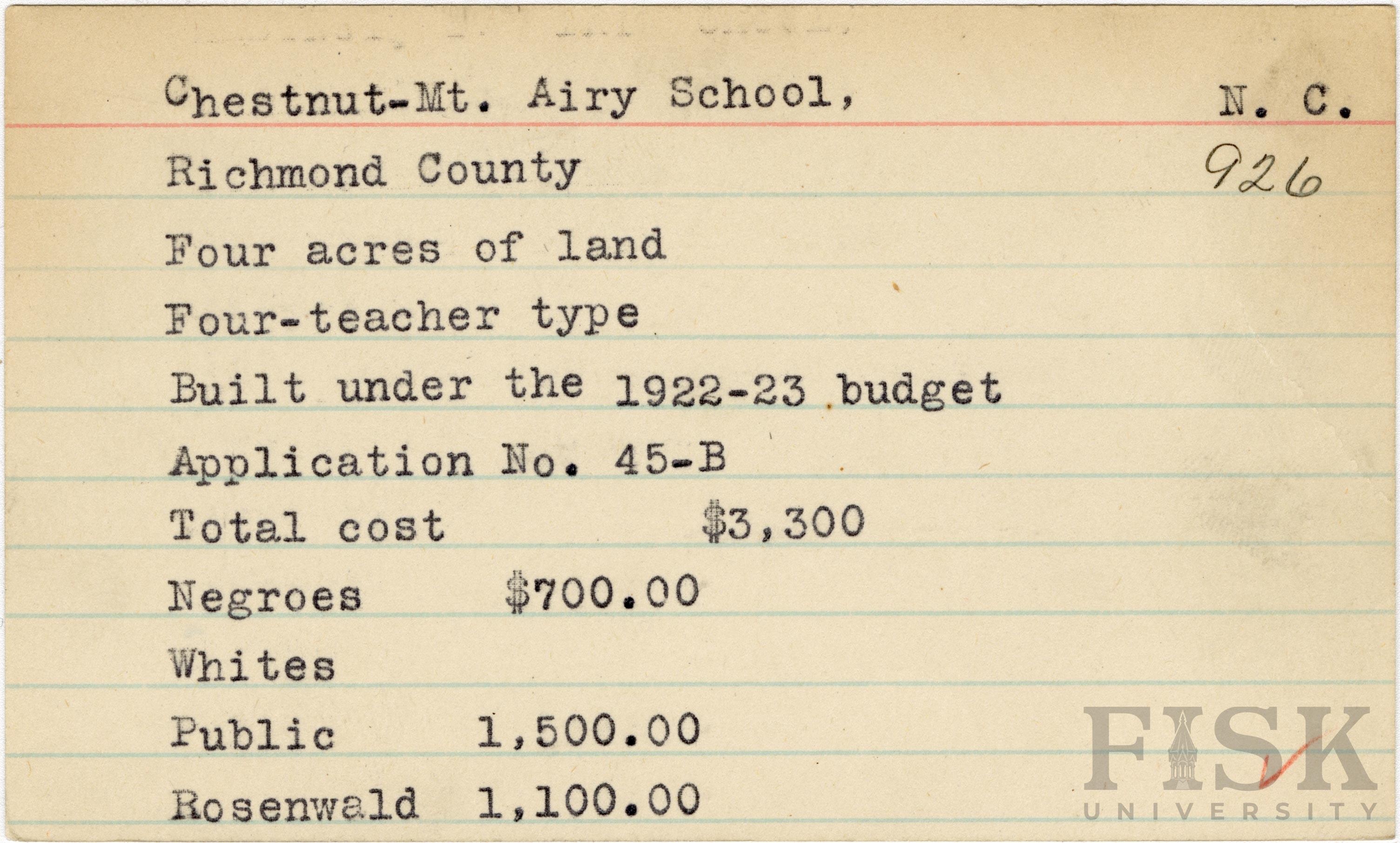 - Rosenwald Fund Card File, The Julius Rosenwald Fund Archives, 1918-1948, John Hope and Aurelia E. Franklin Library