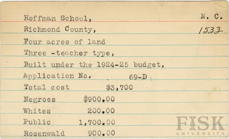 - Rosenwald Fund Card File, The Julius Rosenwald Fund Archives, 1918-1948, John Hope and Aurelia E. Franklin Library