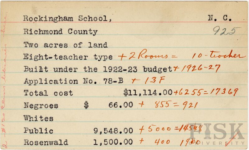 - Rosenwald Fund Card File, The Julius Rosenwald Fund Archives, 1918-1948, John Hope and Aurelia E. Franklin Library