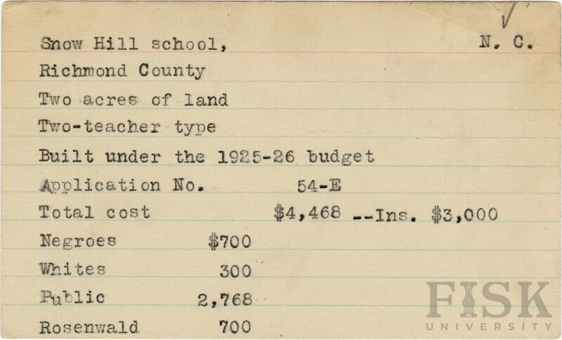 - Julius Rosenwald Fund--Buildings, African American schools--History--20th century, African American schools--Snow Hill School