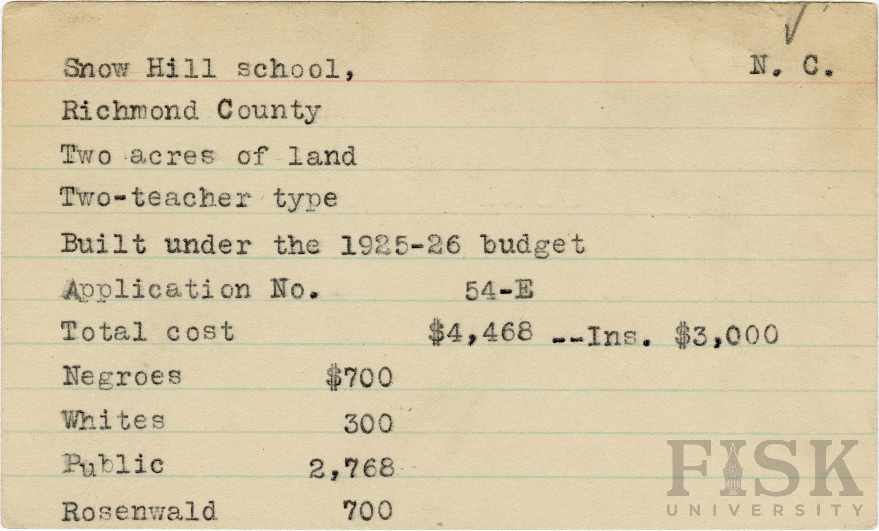 - Rosenwald Fund Card File, The Julius Rosenwald Fund Archives, 1918-1948, John Hope and Aurelia E. Franklin Library