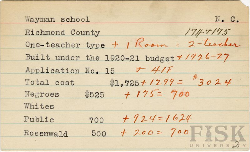 - Rosenwald Fund Card File, The Julius Rosenwald Fund Archives, 1918-1948, John Hope and Aurelia E. Franklin Library