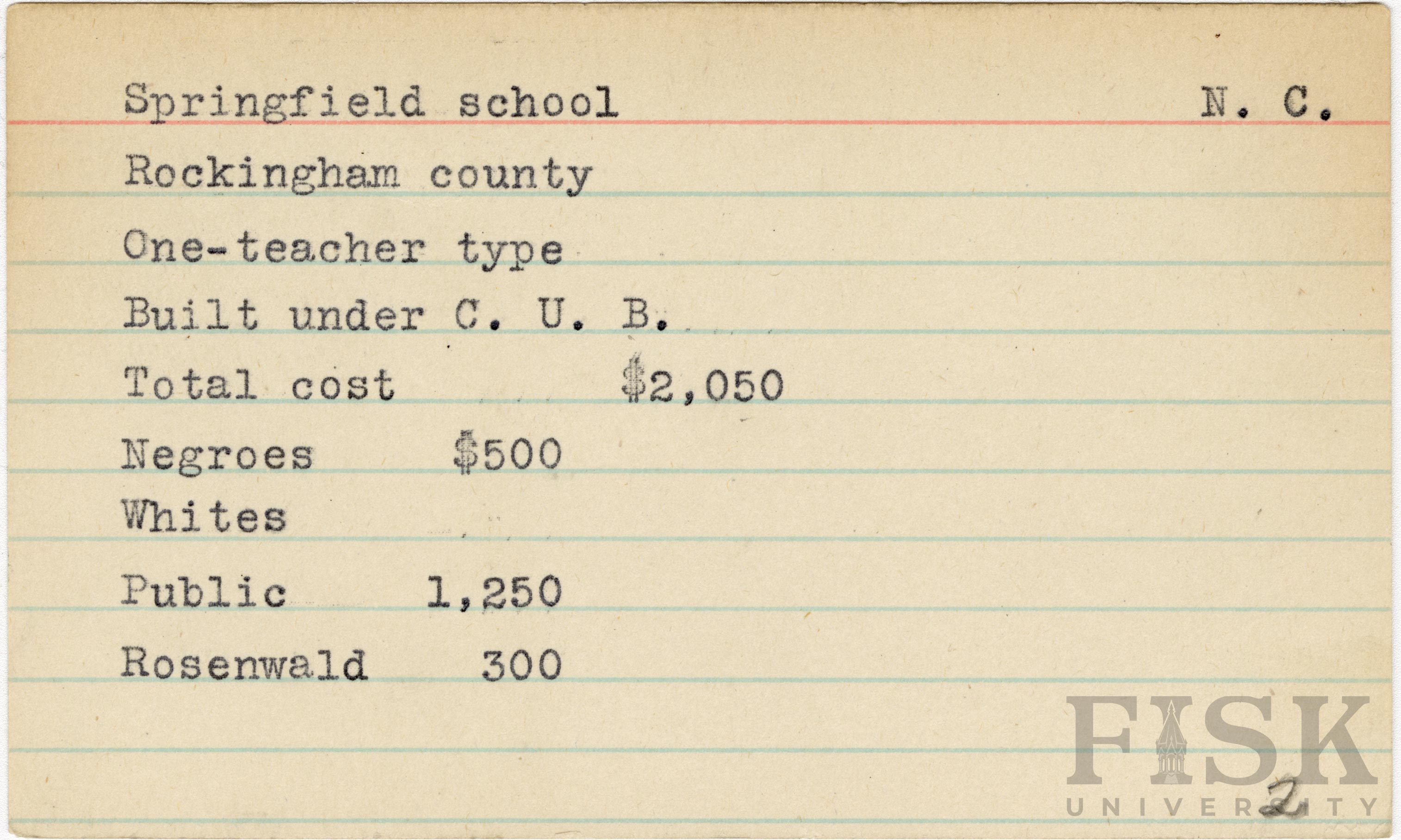 - Julius Rosenwald Fund--Buildings, African American schools--History--20th century, African American schools--Springfield School