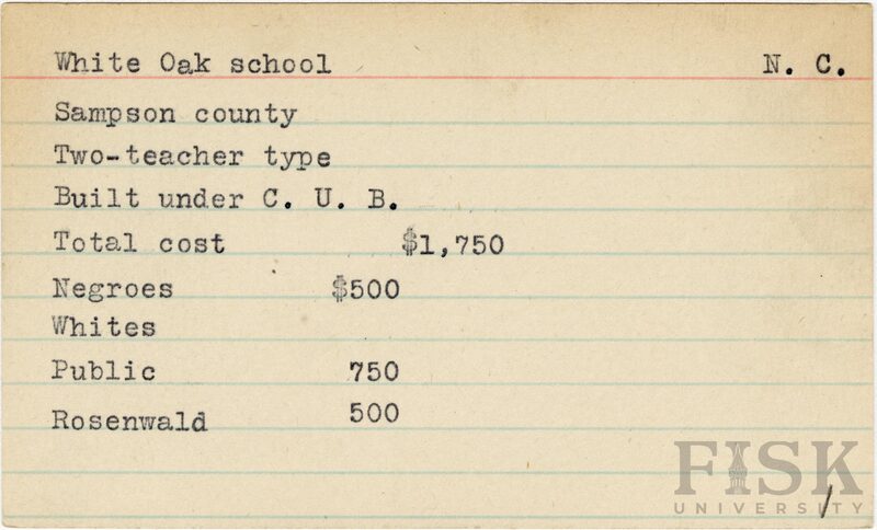 - Julius Rosenwald Fund--Buildings, African American schools--History--20th century, African American schools--White Oak School