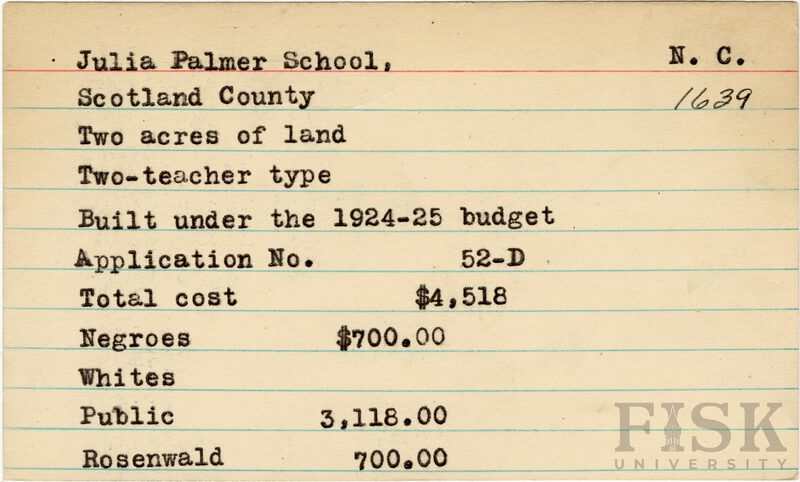 - Rosenwald Fund Card File, The Julius Rosenwald Fund Archives, 1918-1948, John Hope and Aurelia E. Franklin Library