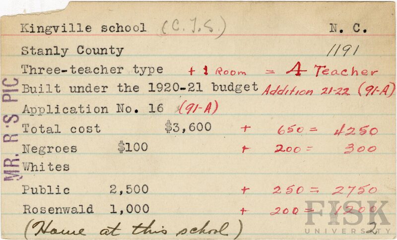 - Rosenwald Fund Card File, The Julius Rosenwald Fund Archives, 1918-1948, John Hope and Aurelia E. Franklin Library