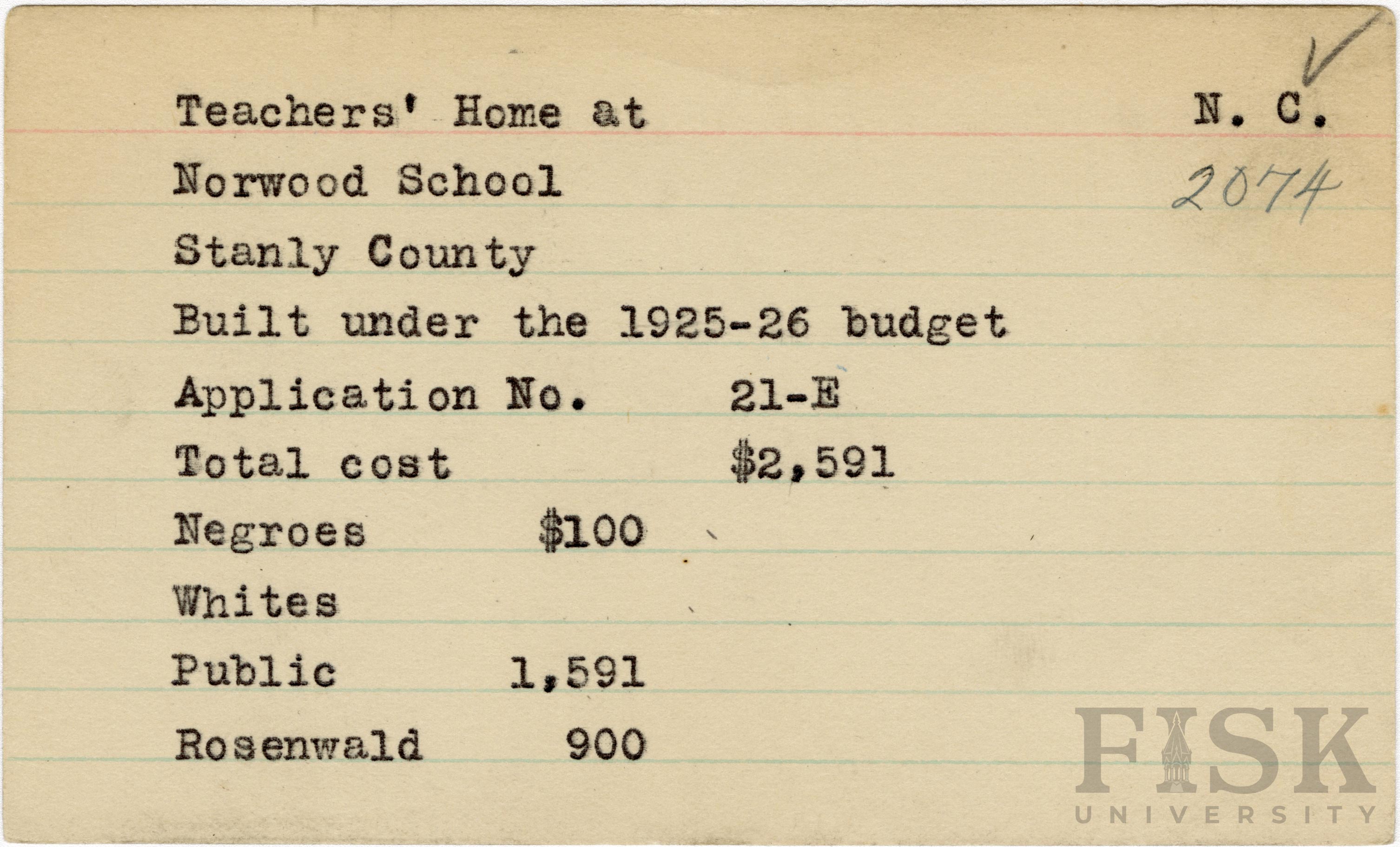 - Julius Rosenwald Fund--Buildings, African American schools--History--20th century, African American schools--Norwood School