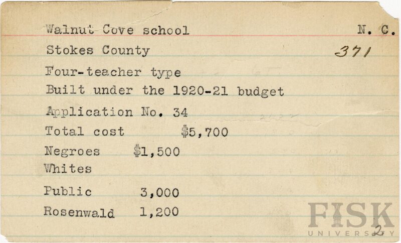 - Julius Rosenwald Fund--Buildings, African American schools--History--20th century, African American schools--Walnut Cove School