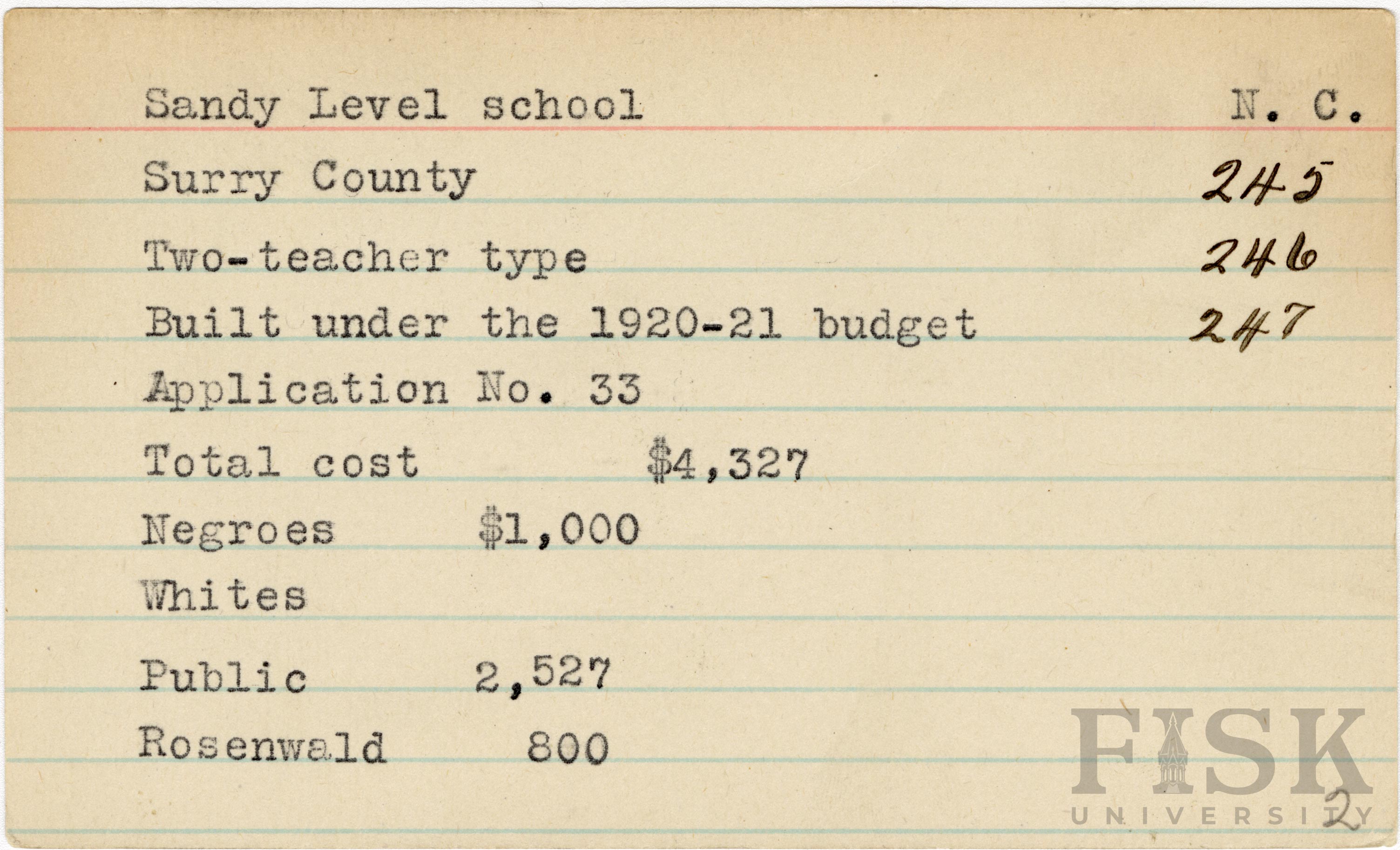 - Rosenwald Fund Card File, The Julius Rosenwald Fund Archives, 1918-1948, John Hope and Aurelia E. Franklin Library