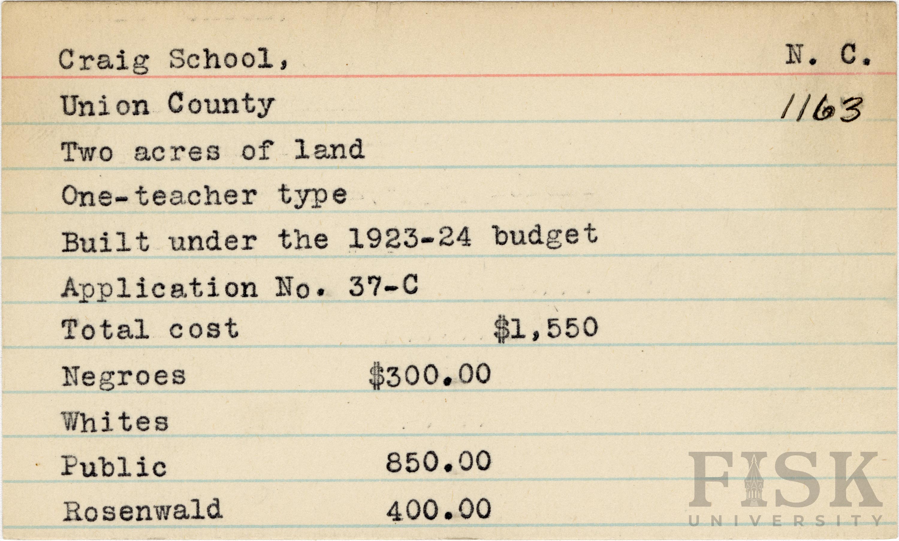 - Rosenwald Fund Card File, The Julius Rosenwald Fund Archives, 1918-1948, John Hope and Aurelia E. Franklin Library
