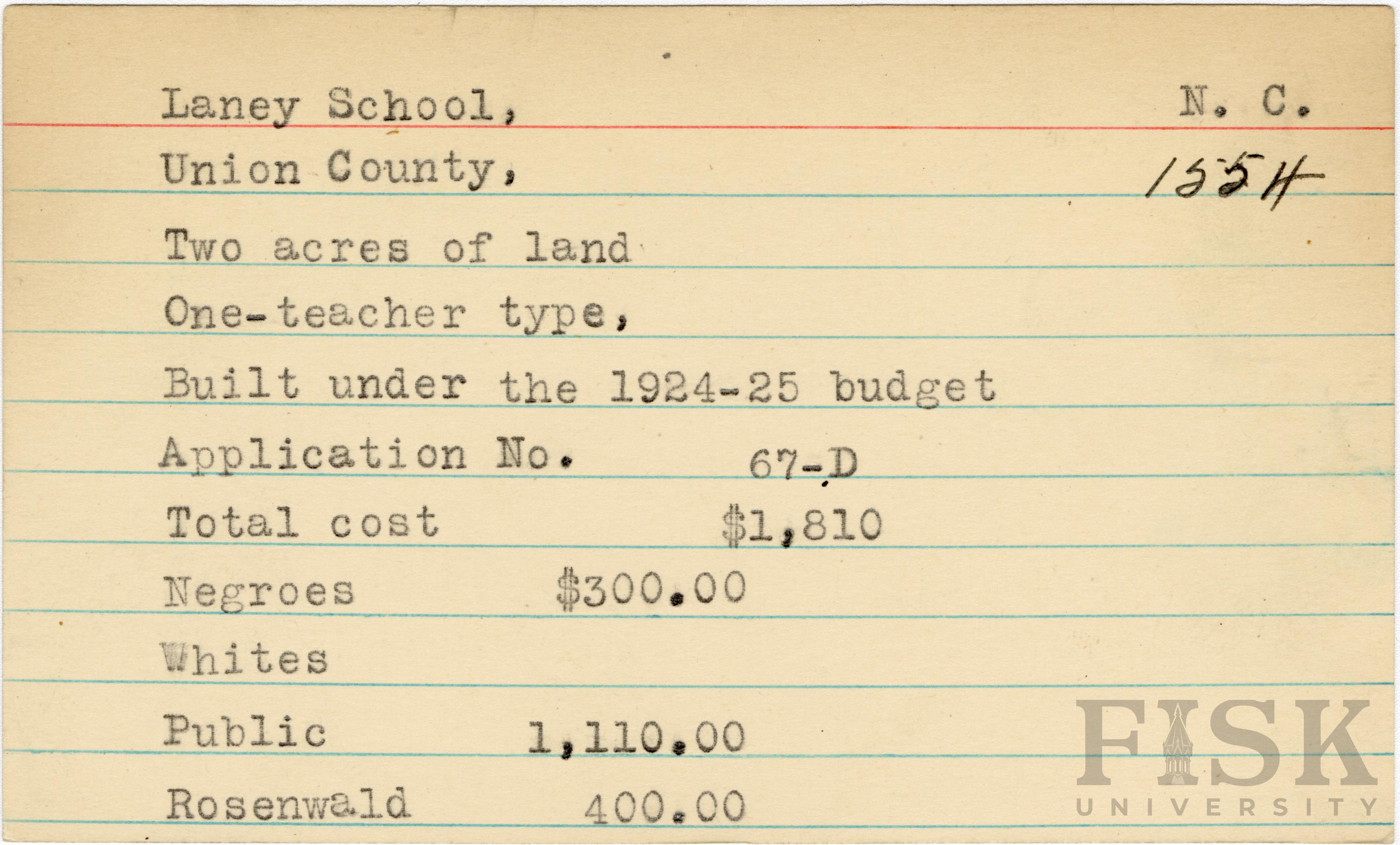 - Julius Rosenwald Fund--Buildings, African American schools--History--20th century, African American schools--Laney School