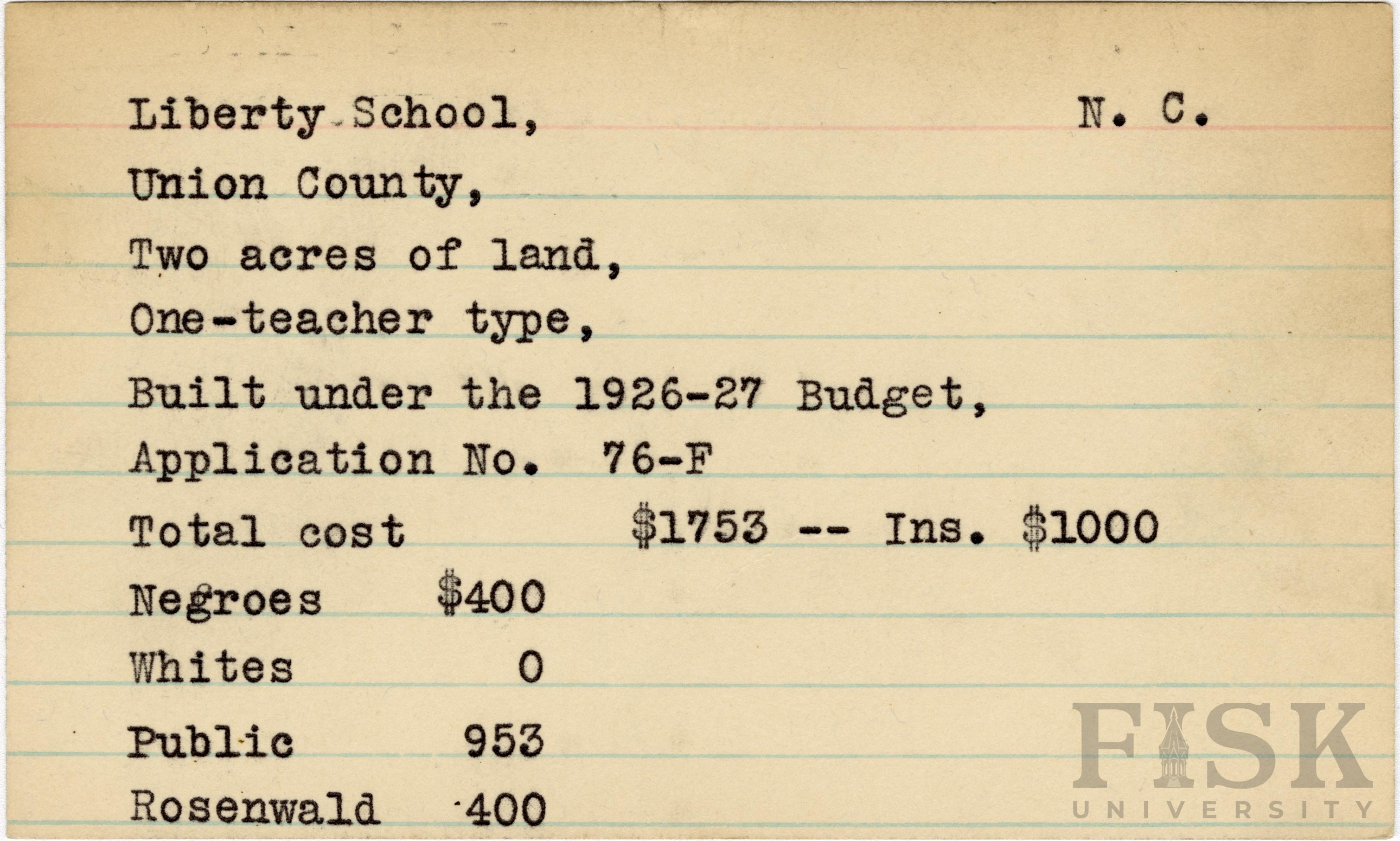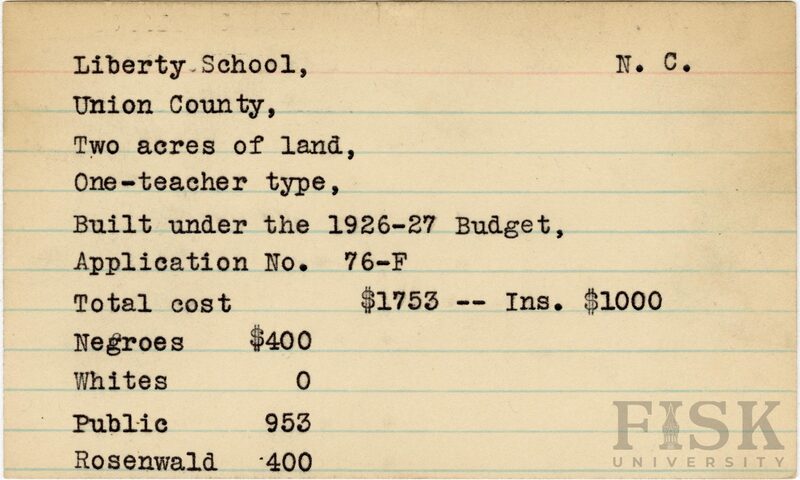- Julius Rosenwald Fund--Buildings, African American schools--History--20th century, African American schools--Liberty School