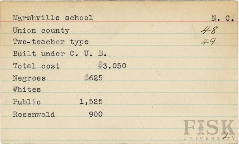 - Julius Rosenwald Fund--Buildings, African American schools--History--20th century, African American schools--Marshville School