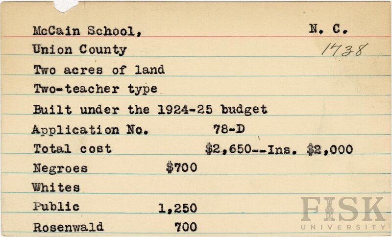 - Rosenwald Fund Card File, The Julius Rosenwald Fund Archives, 1918-1948, John Hope and Aurelia E. Franklin Library