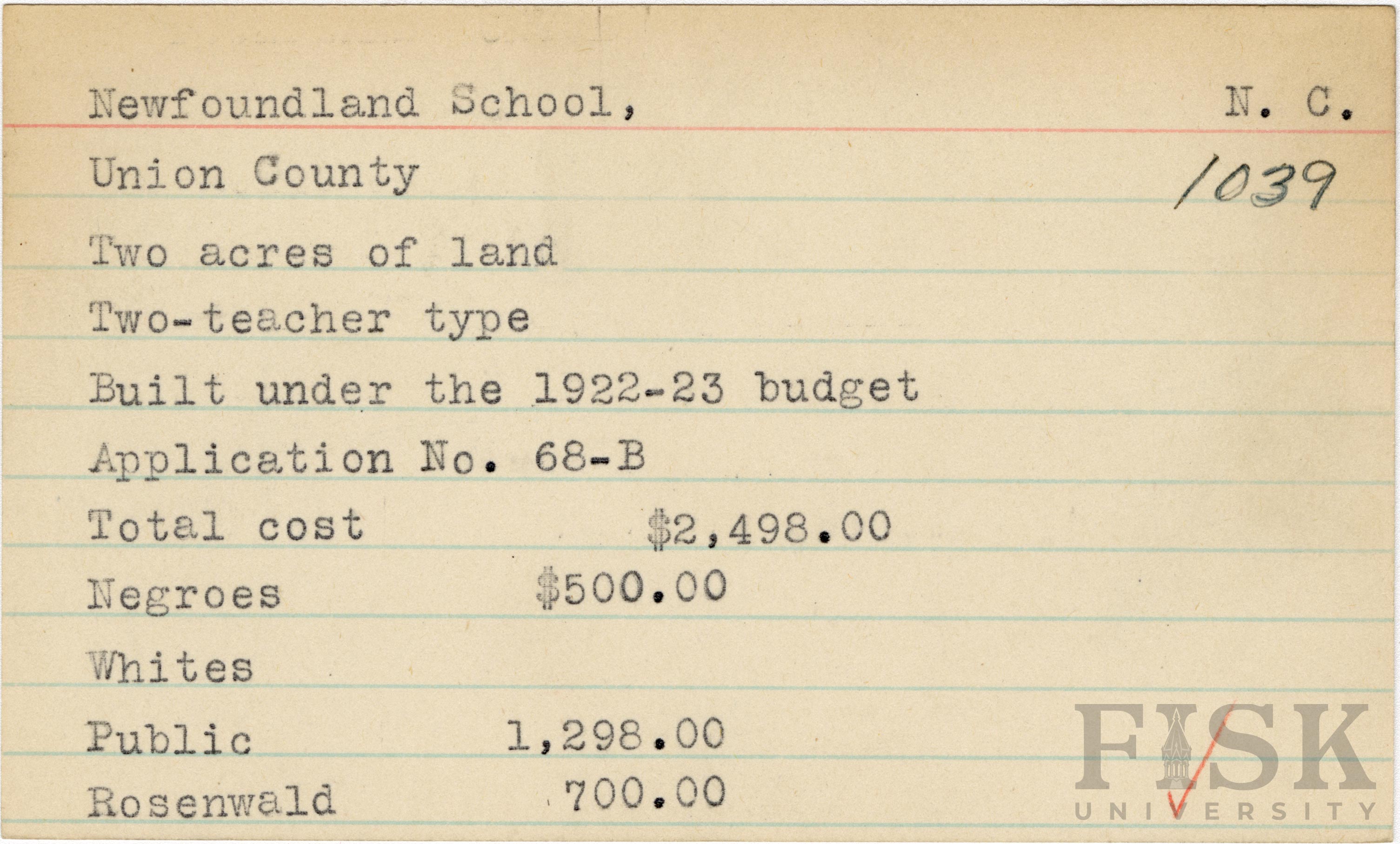 - Julius Rosenwald Fund--Buildings, African American schools--History--20th century, African American schools--Newfoundland School