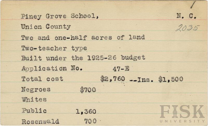 - Rosenwald Fund Card File, The Julius Rosenwald Fund Archives, 1918-1948, John Hope and Aurelia E. Franklin Library