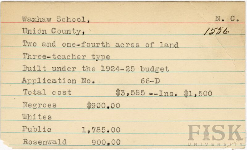 - Julius Rosenwald Fund--Buildings, African American schools--History--20th century, African American schools--Waxhaw School