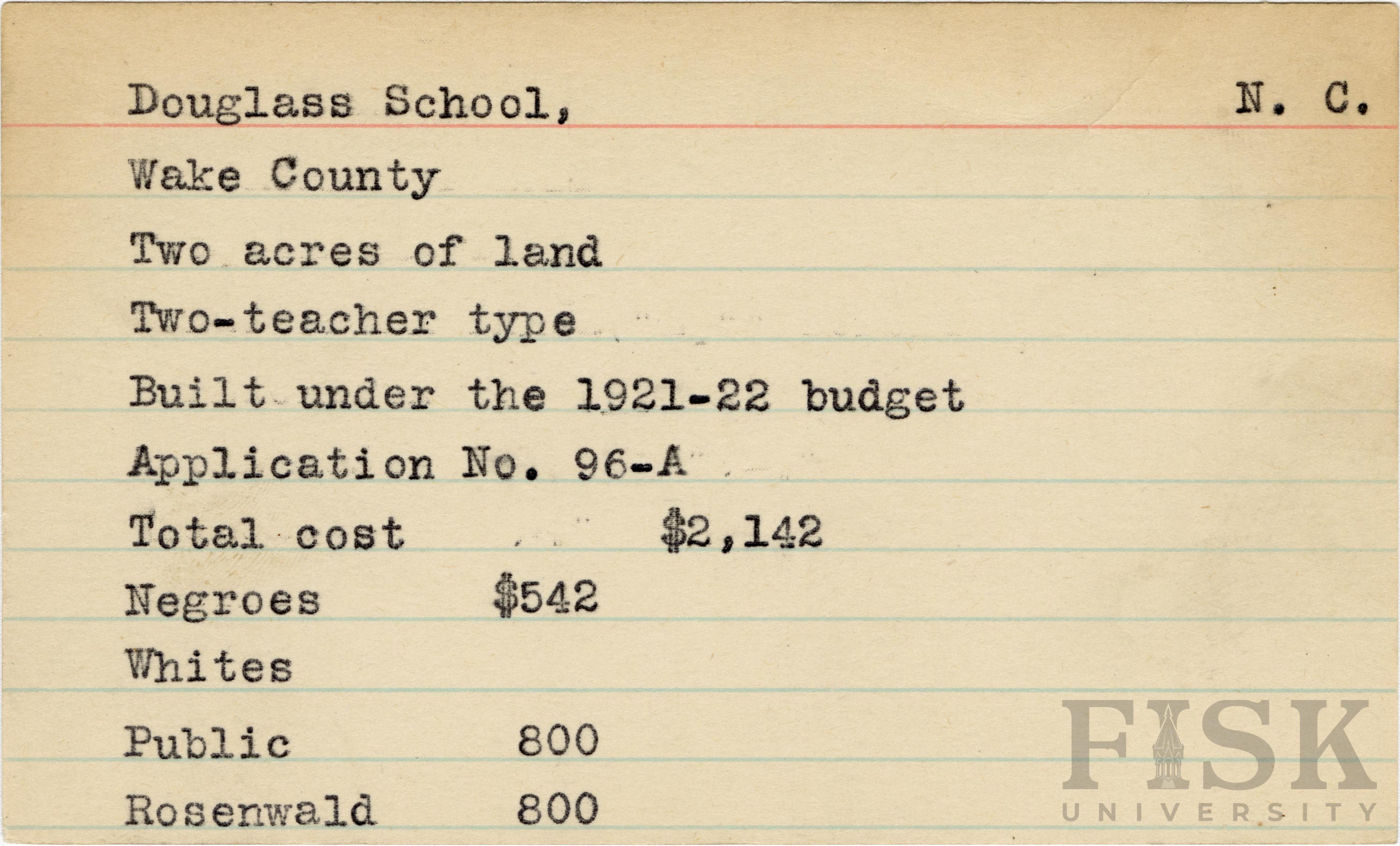 - Julius Rosenwald Fund--Buildings, African American schools--History--20th century, African American schools--Douglass School