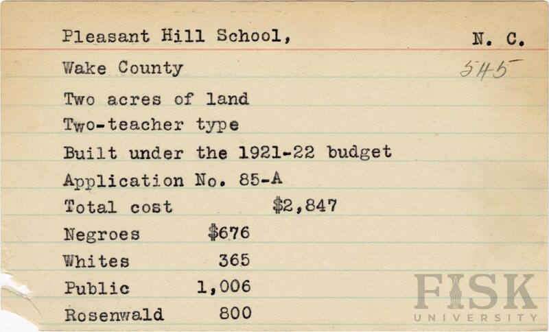 - School card for Pleasant Hill School in Wake County, North Carolina