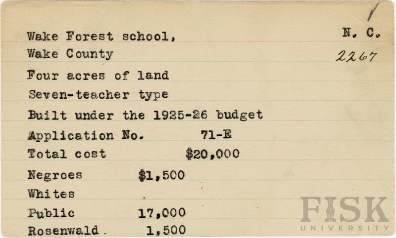 - Rosenwald Fund Card File, The Julius Rosenwald Fund Archives, 1918-1948, John Hope and Aurelia E. Franklin Library