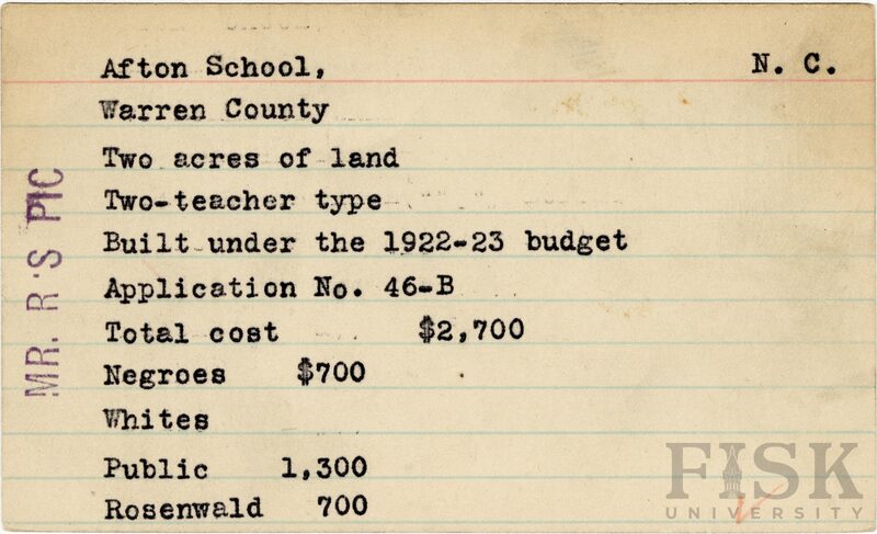 - Rosenwald Fund Card File, The Julius Rosenwald Fund Archives, 1918-1948, John Hope and Aurelia E. Franklin Library
