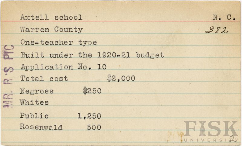 - Rosenwald Fund Card File, The Julius Rosenwald Fund Archives, 1918-1948, John Hope and Aurelia E. Franklin Library