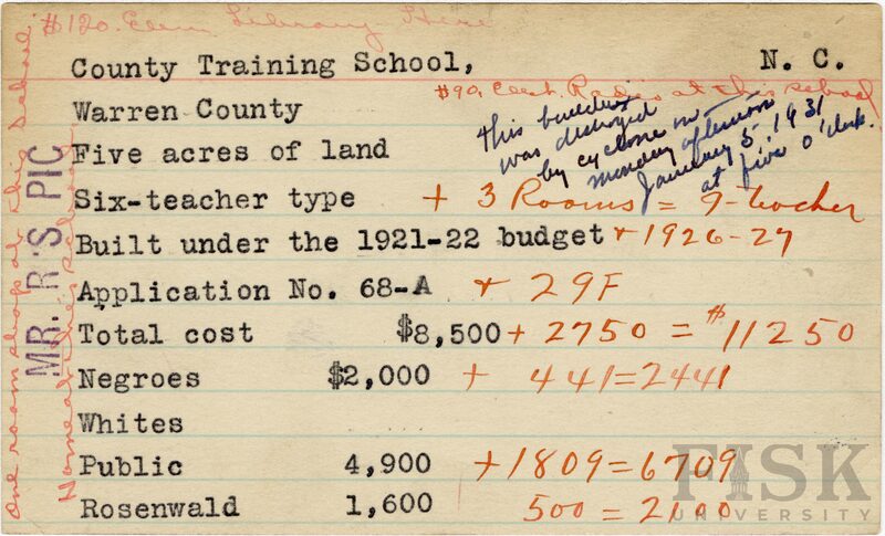 - Rosenwald Fund Card File, The Julius Rosenwald Fund Archives, 1918-1948, John Hope and Aurelia E. Franklin Library
