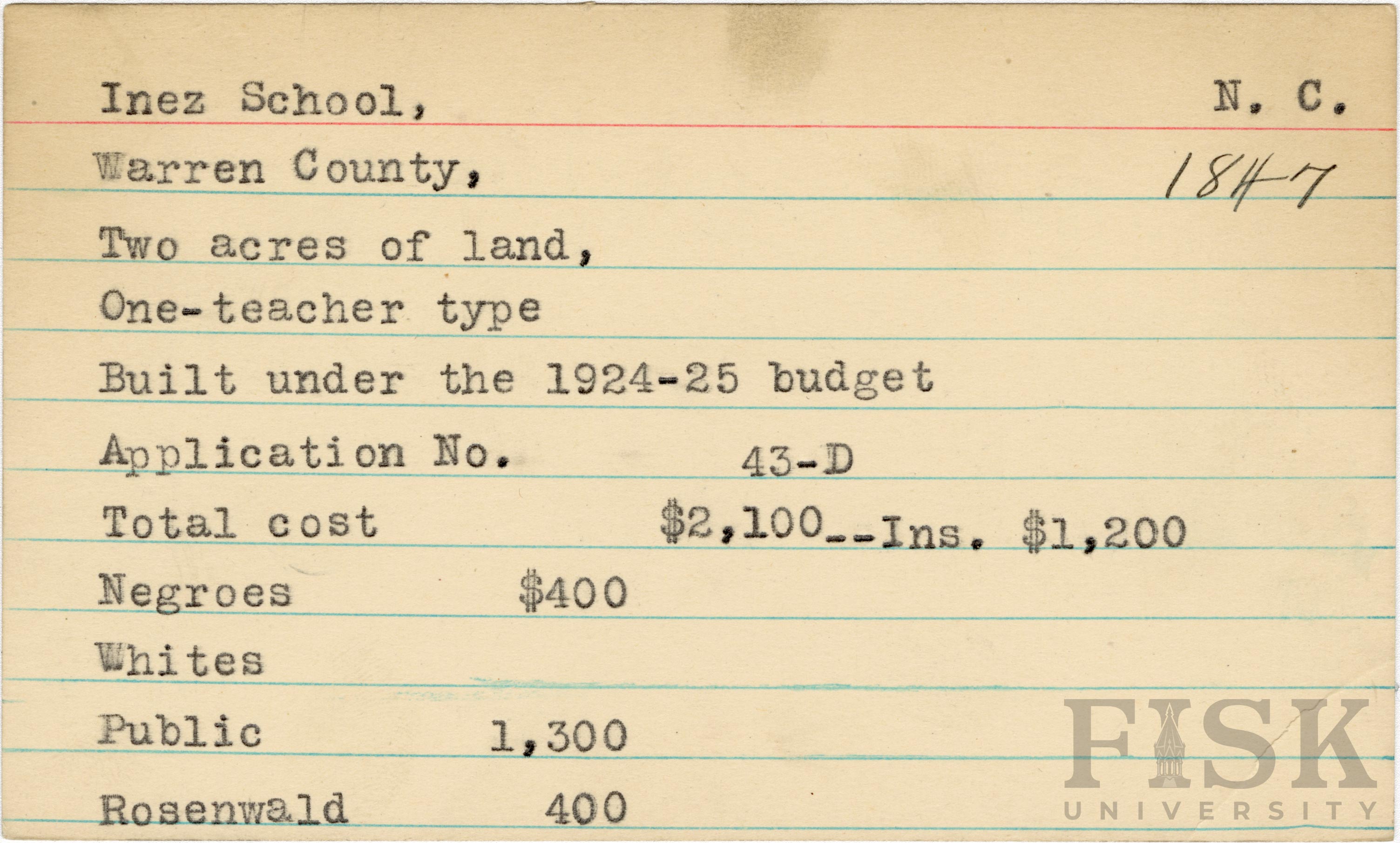 - Rosenwald Fund Card File, The Julius Rosenwald Fund Archives, 1918-1948, John Hope and Aurelia E. Franklin Library