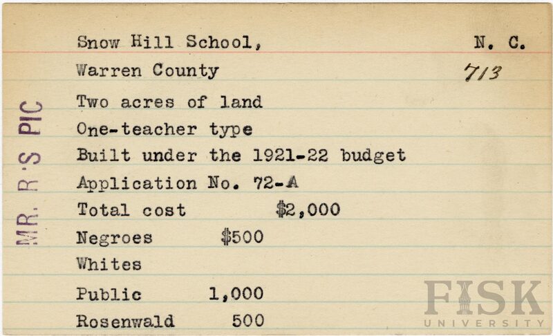 - Julius Rosenwald Fund--Buildings, African American schools--History--20th century, African American schools--Snow Hill School