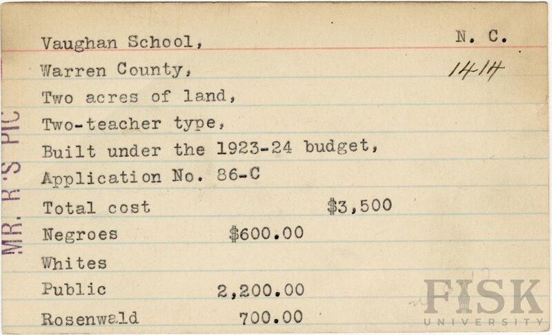 - Julius Rosenwald Fund--Buildings, African American schools--History--20th century, African American schools--Vaughan School