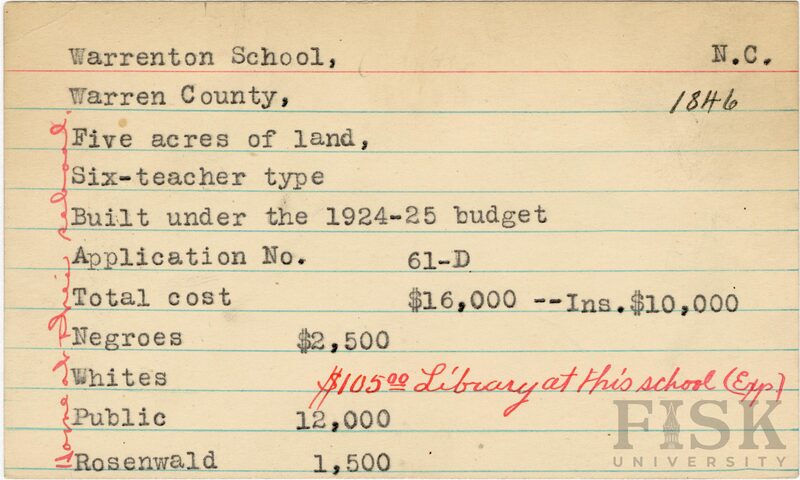 - Rosenwald Fund Card File, The Julius Rosenwald Fund Archives, 1918-1948, John Hope and Aurelia E. Franklin Library