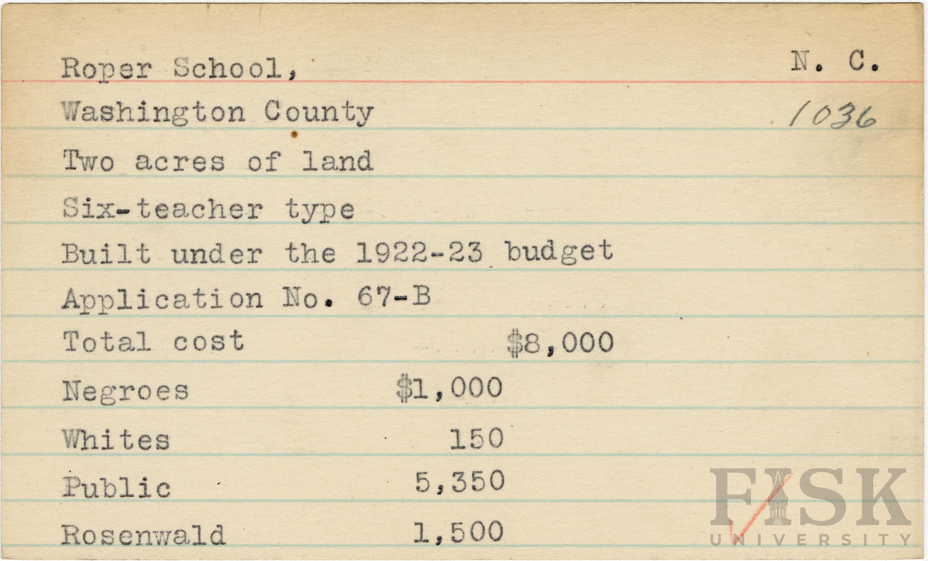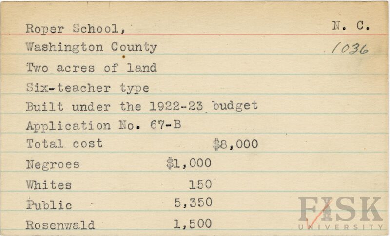 - Julius Rosenwald Fund--Buildings, African American schools--History--20th century, African American schools--Roper School