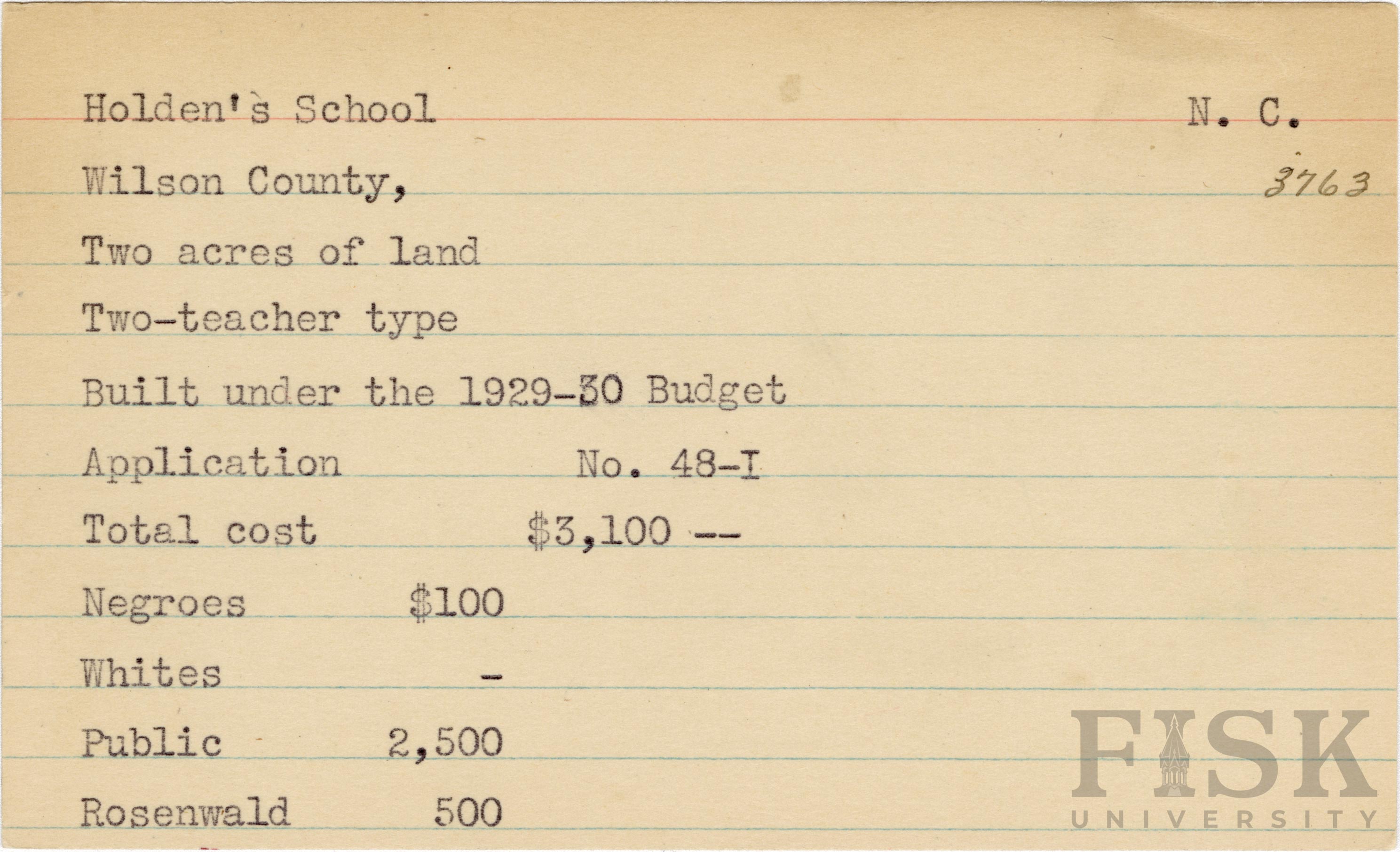 - Rosenwald Fund Card File, The Julius Rosenwald Fund Archives, 1918-1948, John Hope and Aurelia E. Franklin Library