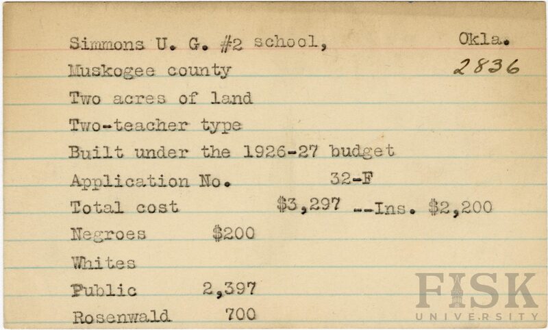 - Simmons U. G. No. 2 School in Muskogee County, Oklahoma