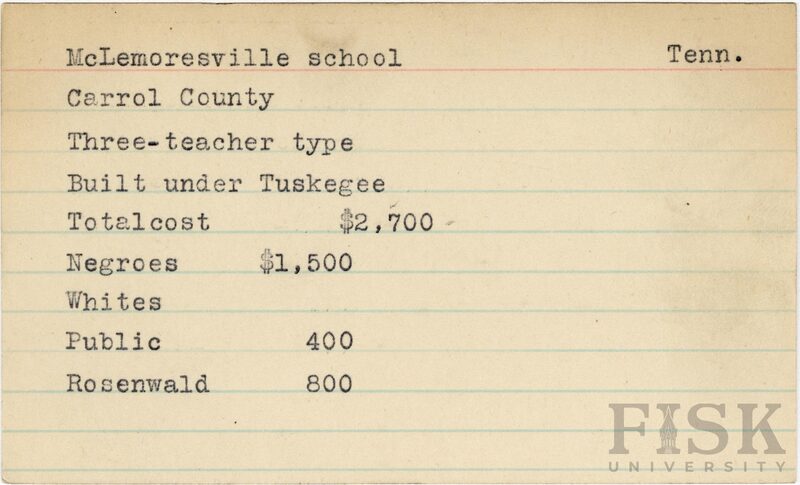 - School card from Rosenwald Fund for McLemoresville School in Carroll County, Tennessee