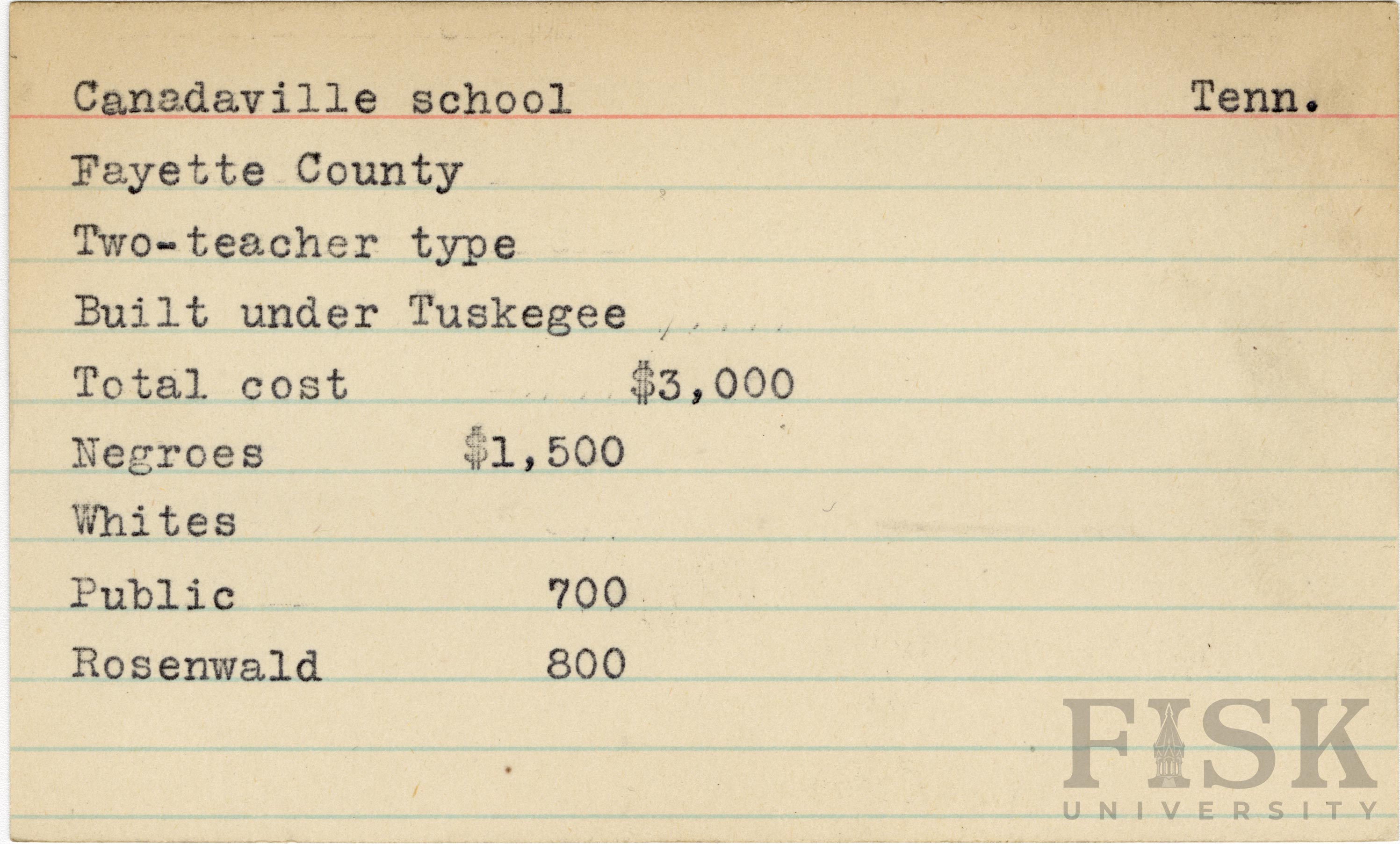 - School card from Rosenwald Fund for Canadaville School in Fayette County, Tennessee