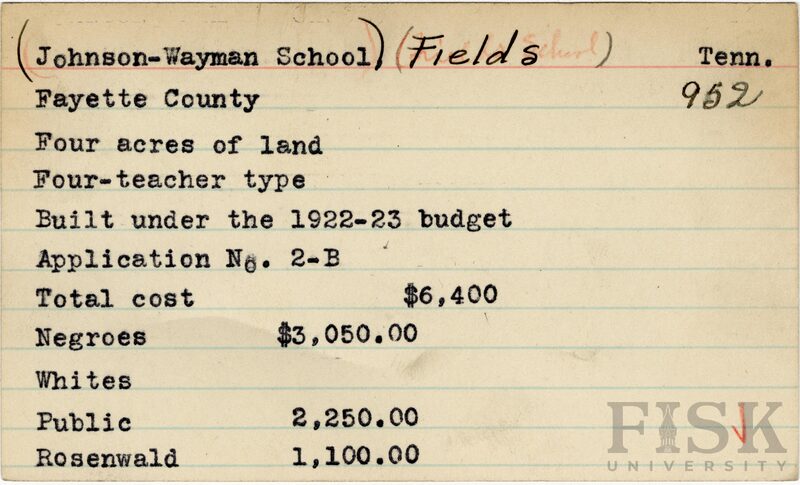 - School card from Rosenwald Fund for Johnson-Wayman School in Fayette County, Tennessee