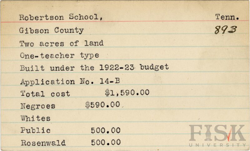 - School card from Rosenwald Fund for Robertson School in Gibson County, Tennessee