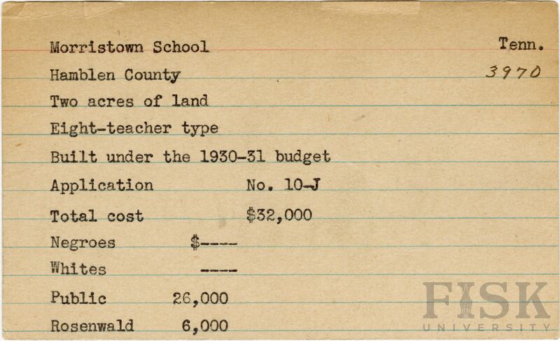- School card from Rosenwald Fund for Morristown School in Hamblen County, Tennessee