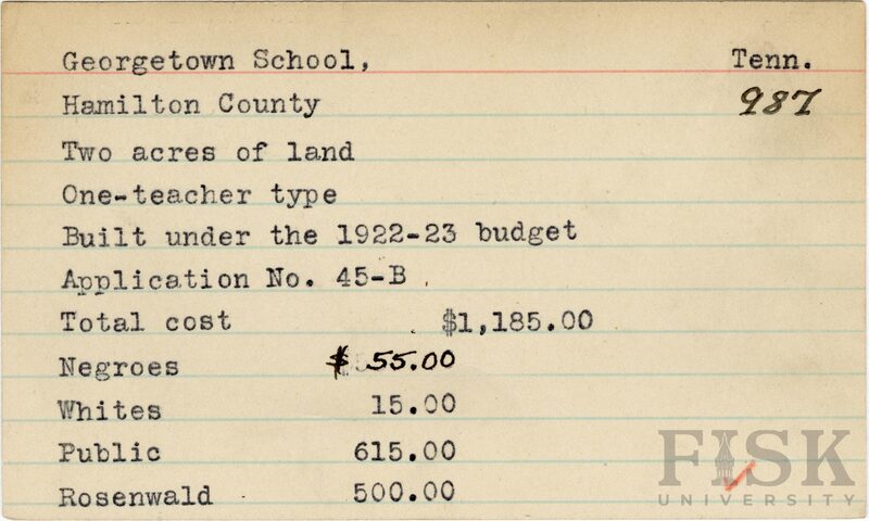 - School card from Rosenwald Fund for Georgetown School in Hamilton County, Tennessee