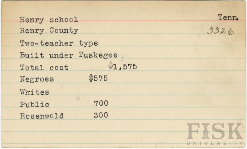 - School card from Rosenwald Fund for Henry School in Henry County, Tennessee
