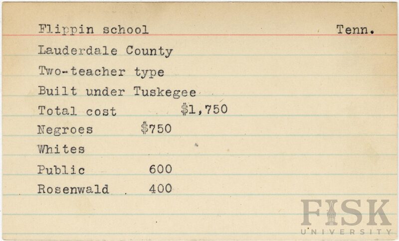 - School card from Rosenwald Fund for Flippin School in Lauderdale County, Tennessee