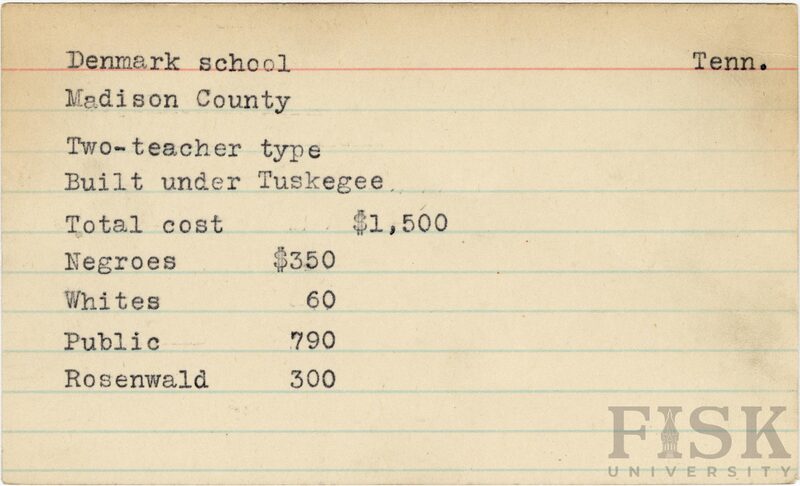 - School card from Rosenwald Fund for Denmark School in Madison County, Tennessee