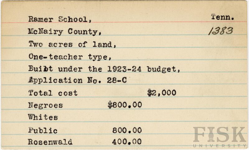 - School card from Rosenwald Fund for Ramer School in McNairy County, Tennessee