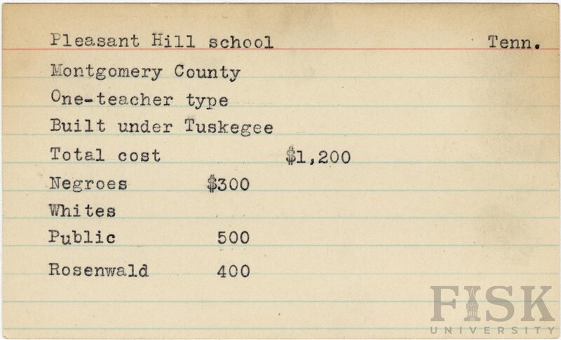 - School card from Rosenwald Fund for Pleasant Hill School in Montgomery County, Tennessee