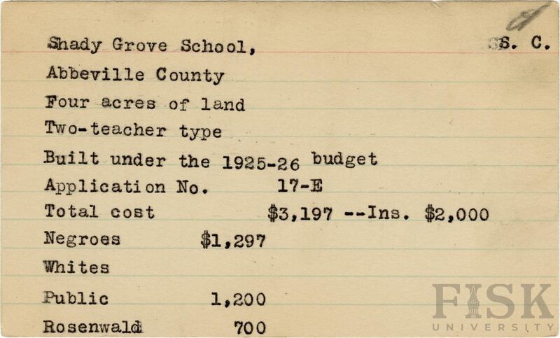 - Rosenwald Fund Card File, The Julius Rosenwald Fund Archives, 1918-1948, John Hope and Aurelia E. Franklin Library