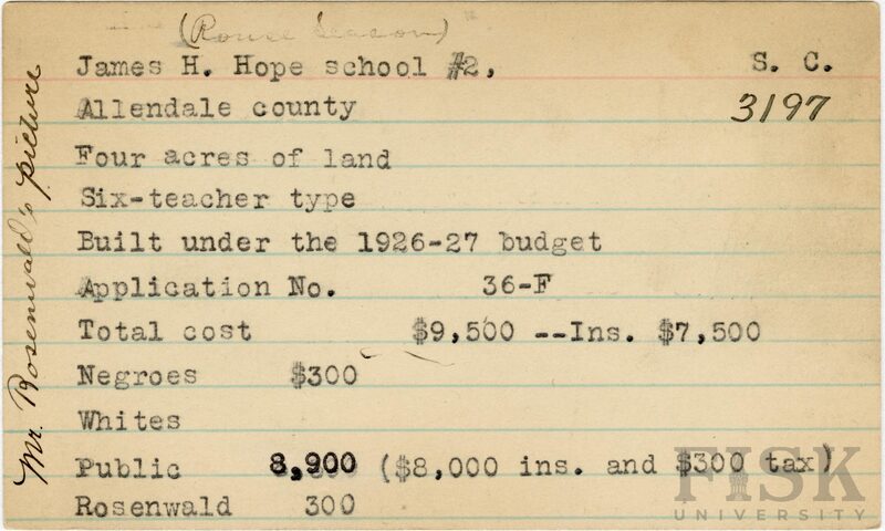 - Rosenwald Fund Card File, The Julius Rosenwald Fund Archives, 1918-1948, John Hope and Aurelia E. Franklin Library